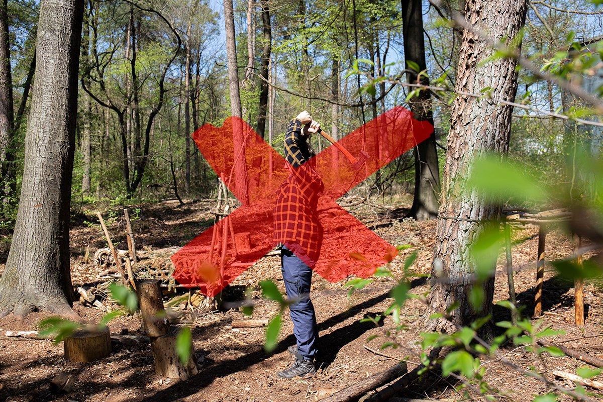 The perfect chopping block is a straight piece of wood at knee height. Unable to find the right piece of wood? Rather use no chopping block at all than a block that is too high. When splitting wood without a chopping block the axe will hit the ground a lot more often causing the edge to become blunt faster as well, but at least the axe won't end up in your body.